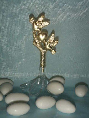 24 Jordan Almond Plastic Candy Holder with Double Doves Decorative Picks Overviews